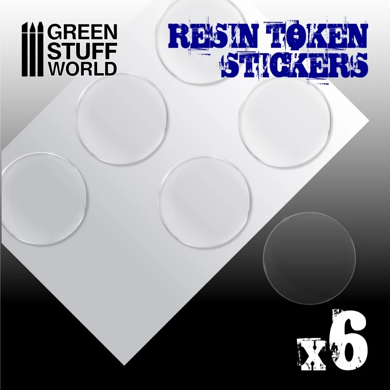 These round and soft transparent adhesive resin token stickers (also known as cabochons, epoxy domes or epoxy domed stickers ) are perfect for creating tokens, markers or counters for wargaming or tabletop board games.