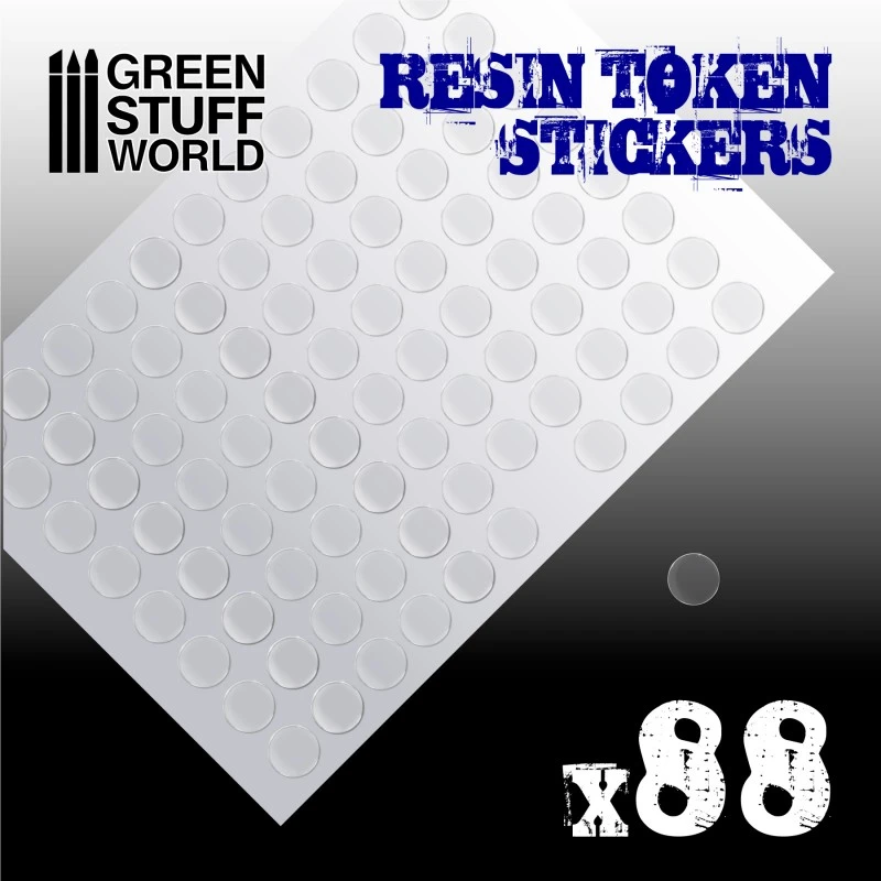 These round and soft transparent adhesive resin token stickers (also known as cabochons, epoxy domes or epoxy domed stickers ) are perfect for creating tokens, markers or counters for wargaming or tabletop board games.