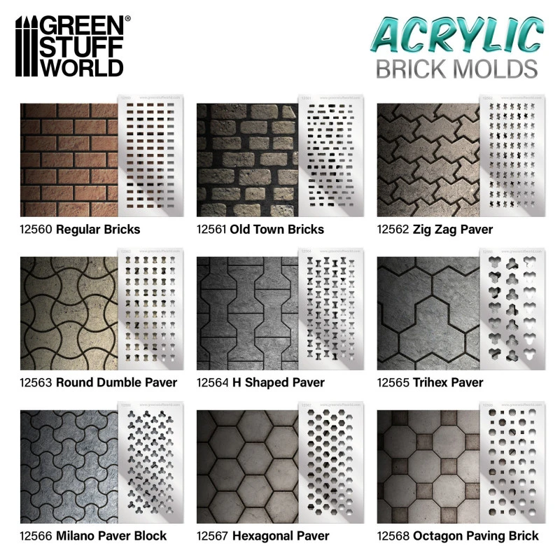 Elevate your dioramas to an unparalleled level of realism with our acrylic molds for modeling regular bricks. These accessories will allow you to create an infinite number of them with precision and consistency, adding authenticity and depth to your creations. They are specifically designed to create miniature regular bricks for use in scale modeling projects. Each model features a variety of patterns and textures that replicate real ones and that modelers will use to shape the air-drying clay.