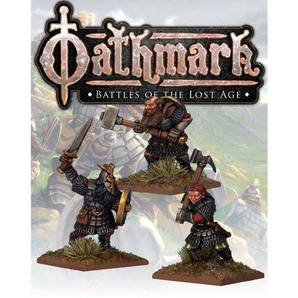 Three metal Dwarf figures, designed to compliment the Oathmark: Battles of the Lost Age plastic Dwarf models.