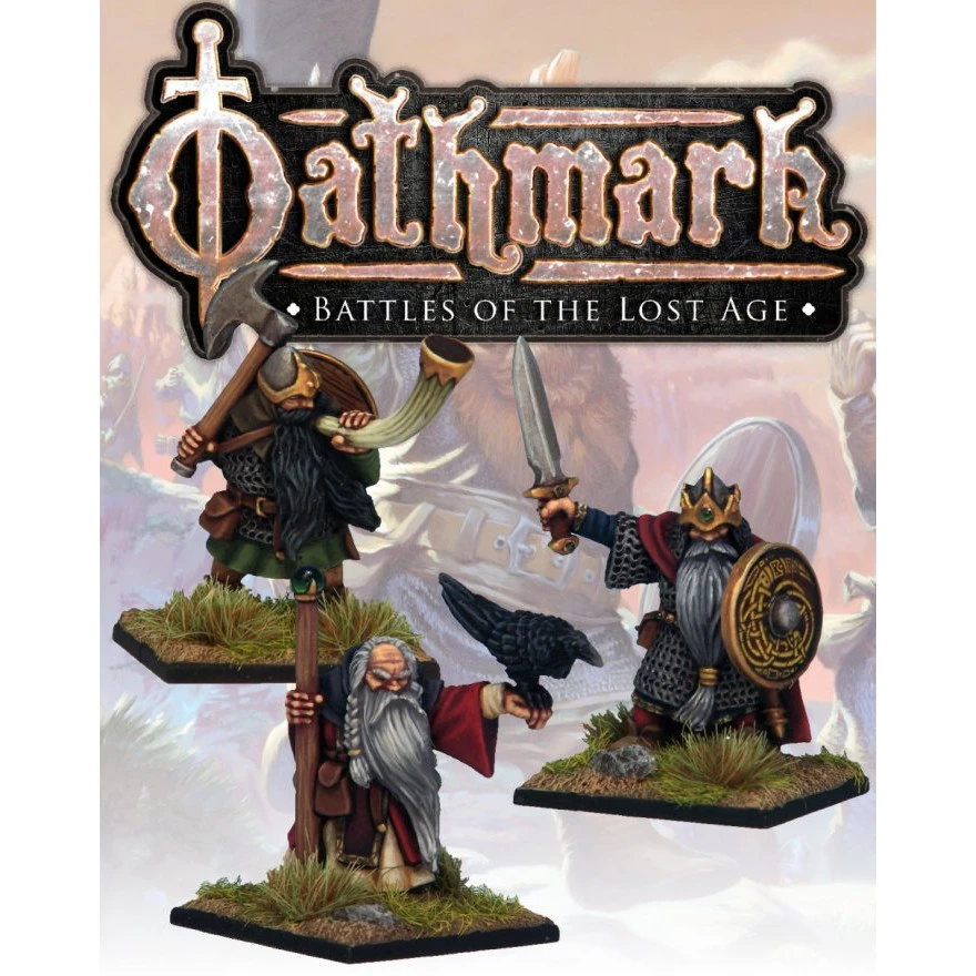 Three metal Dwarf figures, designed to compliment the Oathmark: Battles of the Lost Age plastic Dwarf models.