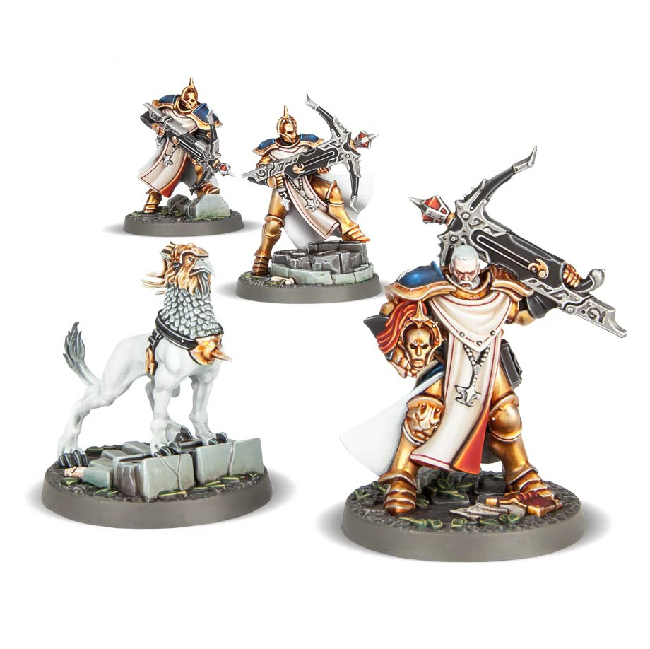 This plastic kit comes as 19 components, and is supplied with 4 40mm sculpted round bases, each featuring holes for corresponding pegs on the feet of each model. Includes a Stormcast Eternals transfer sheet.