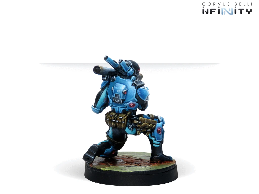 This blister includes one miniature: An Echo-Bravo with a Light Rocket Launcher. Thanks to his Airborne Infiltration Special Skill, he will spread the chaos among the enemy lines. An addition that will provide mobility to your Varuna Immediate Reaction Division.