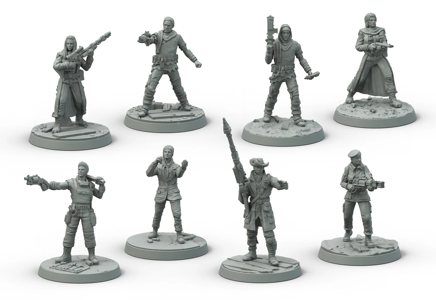 Expand your collection with these high quality multi-part 32mm scale resin miniatures of Mama Murphy, Preston Garvey, Ronnie Shaw, Sturges, 2 male and 2 female settlers plus all the cards you need to play as the Survivors faction.