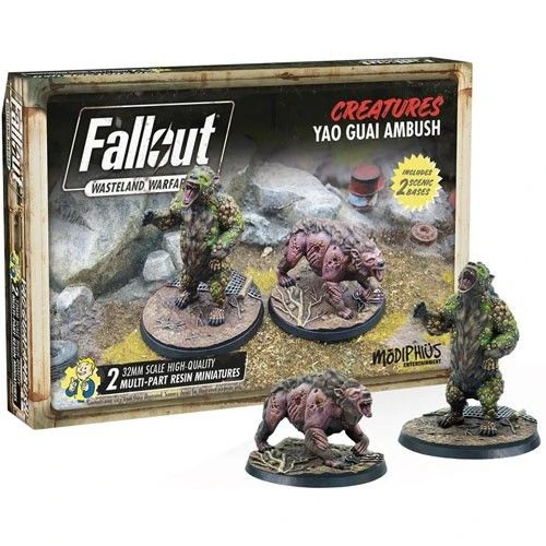 The Yao Guai are monstrous, mutated descendants of black bears. These beasts have razor sharp claws, massive teeth, and a predilection for violence. These gigantic creatures can soak up far more punishment than one would expect, and can rip a man in half in seconds. The Yao Guai set includes a standard and irradiated version of these fearsome beasts.