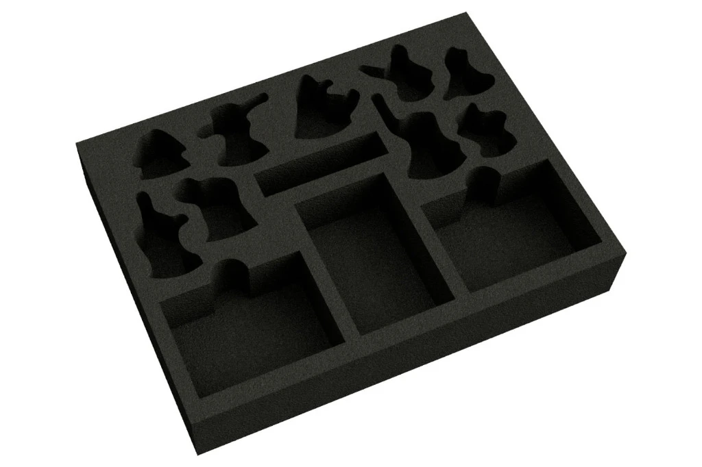 The tray is made of increased density foam which keeps it firm and gives better protection for miniatures.