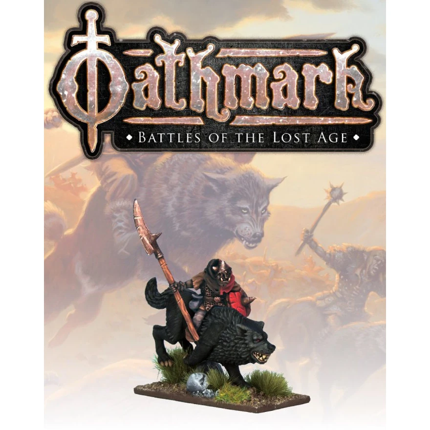 Goblin champion mounted on giant wolf.