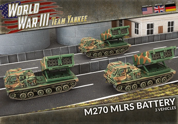 Contains 3x MLRS Rocket Launchers, 1x Minefield Marker and 3x Unit Cards.