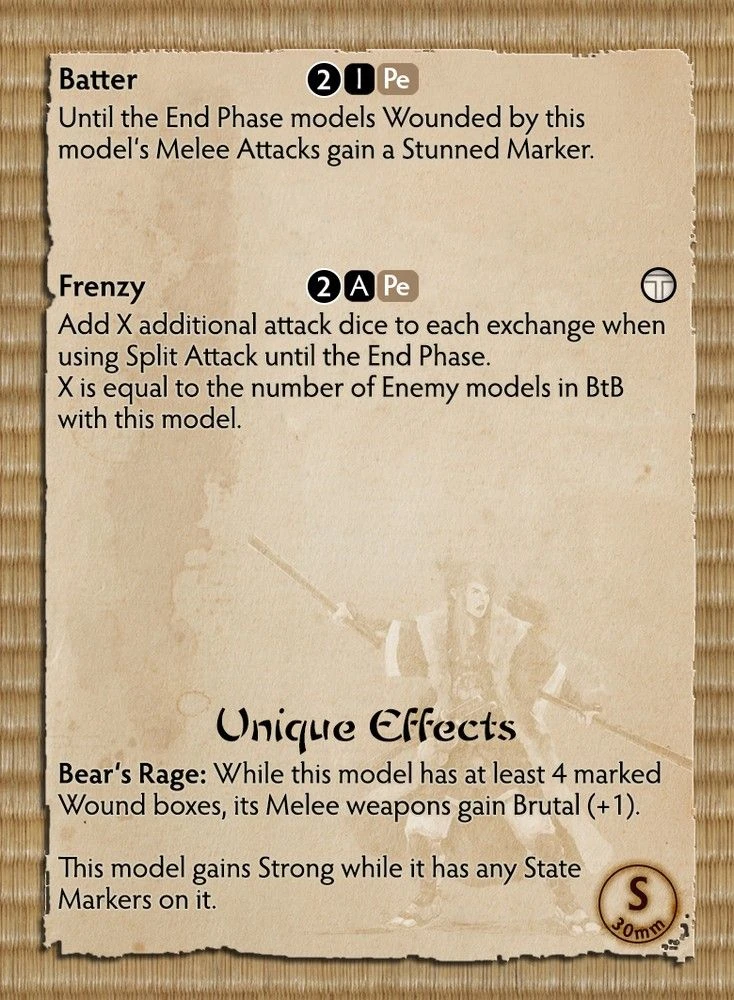 Wielding two full-size, Tetsubo, Akasuki is the best representation of Minimotoβs βYou donβt want to hurt meβ tank mechanics. As well as the high wound boxes and Armour traits, Minimoto have a theme running through their mechanics of discouraging opponents from hurting them. In this case, not only will damage grant Brutal, very much increasing her melee ability, but any attempt to afflict her with