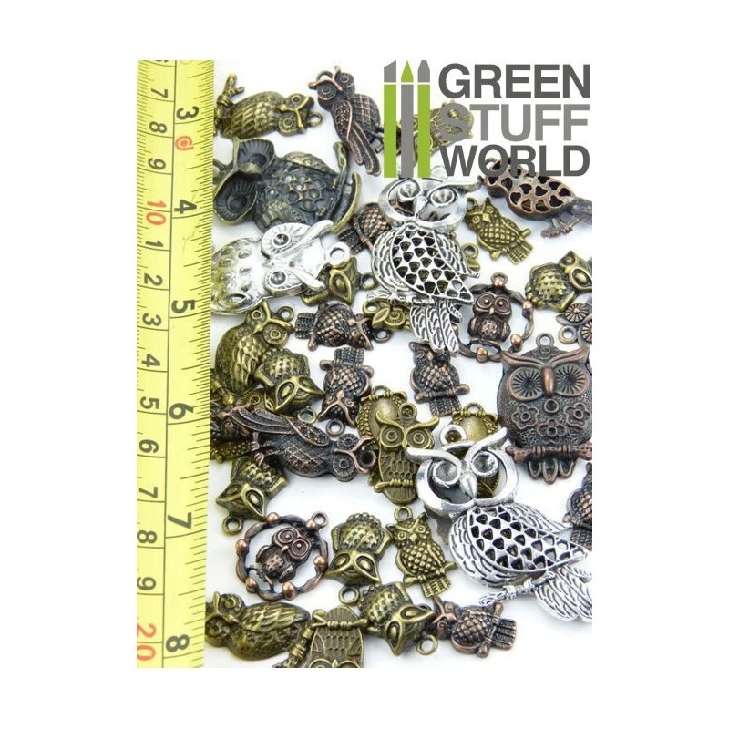 Specially selected OWLS Beads among 30 different types in different sizes and colors. They are made of metal and brand new.