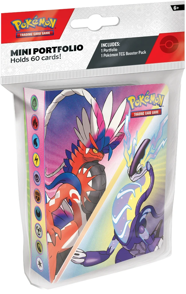 Store up to 60 of your latest and greatest Pokémon cards in this mini portfolio. Each portfolio comes with a booster pack from the new Pokémon TCG Scarlet & Violet expansion, so you can start filling it up right away!