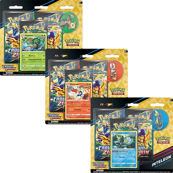 • 1 collectable pin featuring Rillaboom, Cinderace or Inteleon