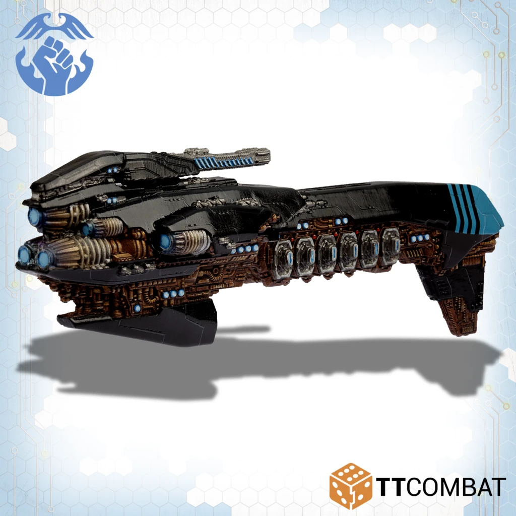 This set contains 1 Resistance Grand Cruiser, able to be built as either a Centurion or a Gladiator.ย This brand new Earth-pattern ship supersedes the older Exclusive miniature we produced, moving its turret to the top, and adding a new front keel reminiscent of the rest of the Resistance range.