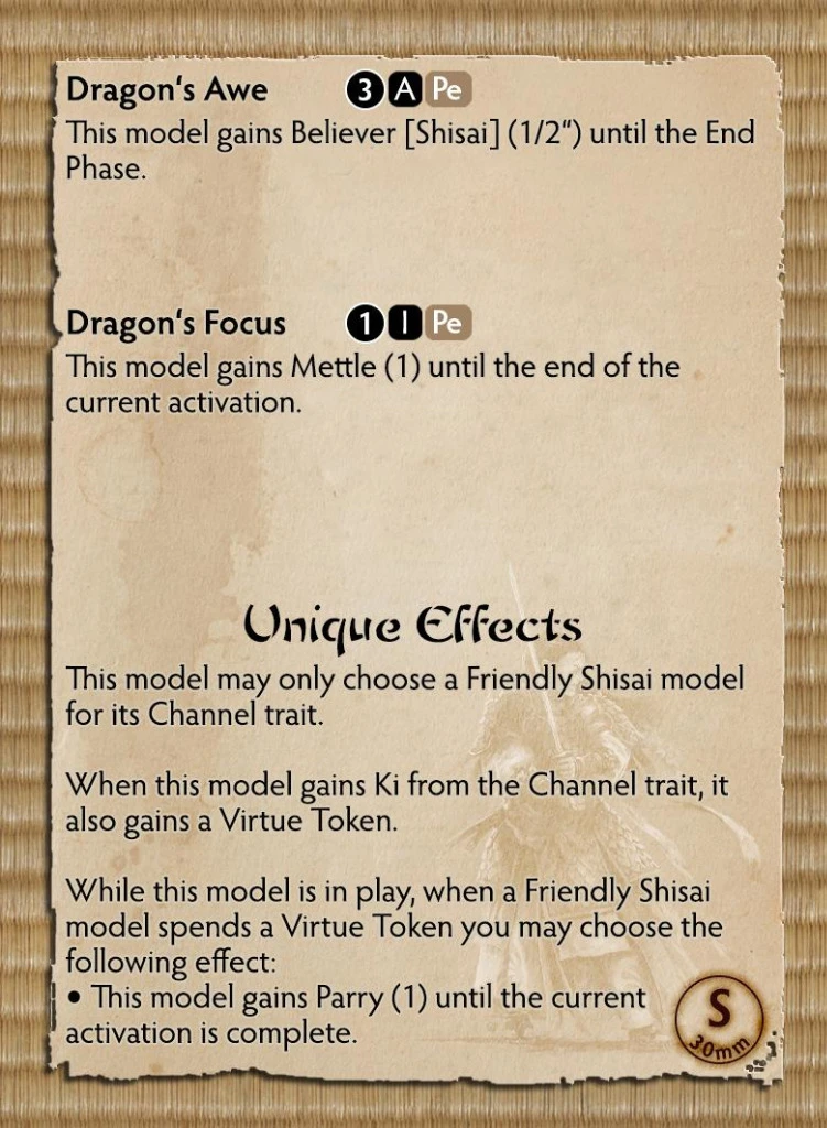 Ryu players can expect a few of these models to offer a different play style for their samurai. The more you include in a warband, the more options you have for Channel, Believer and Virtue effects.
