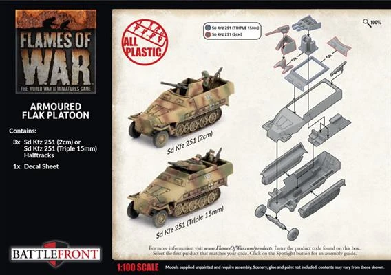 1 x German Sd Kfz 251 2cm / Triple 15mm Armoured Flak Platoon pack contains: