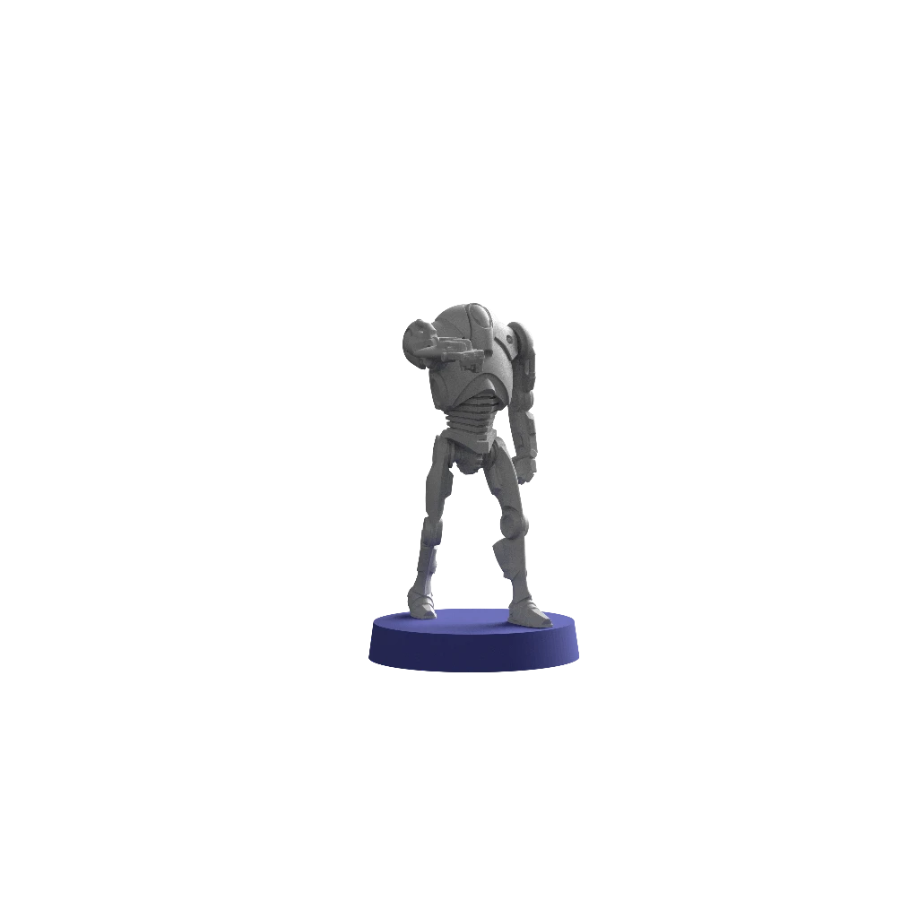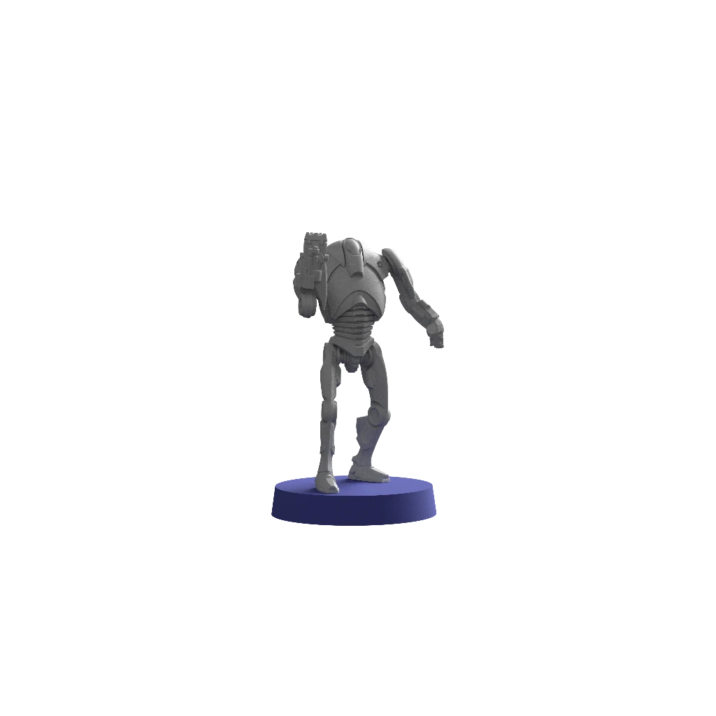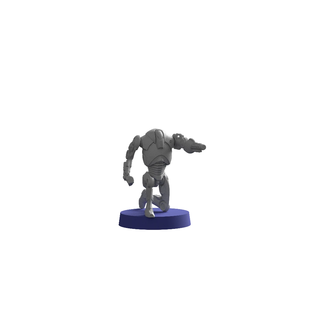 B2 Super Battle Droids are the hulking, brutal cousins of the wiry B1-series battle droids of the Separatist army. Heavily armored and devastatingly powerful with their integrated wrist blasters, the sight of a squad of these droids on the battlefield can chill even the most seasoned of clone troopers.