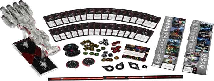 Within this expansion, you’ll find everything you need to add one CR90 Corellian Corvette ship to your Rebel Alliance or Galactic Republic squadron, including ship cards, tokens and maneuver dials. Finally, this expansion also includes the components you need to fly this or any other huge ship in battle, including a huge ship maneuver tool and a huge ship damage deck.