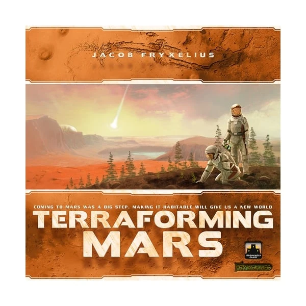 In the 2400s, mankind begins to terraform the planet Mars. Giant corporations, sponsored by the World Government on Earth, initiate huge projects to raise the temperature, the oxygen level, and the ocean coverage until the environment is habitable. In Terraforming Mars, you play one of those corporations and work together in the terraforming process, but compete for getting victory points that are awarded not only for your contribution to the terraforming, but also for advancing human infrastructure throughout the solar system, and doing other commendable things.