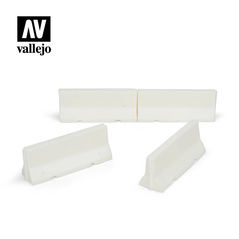 Four units of “New Jersey” type concrete barriers, of modern design and in use today. Ideal for scene setting.