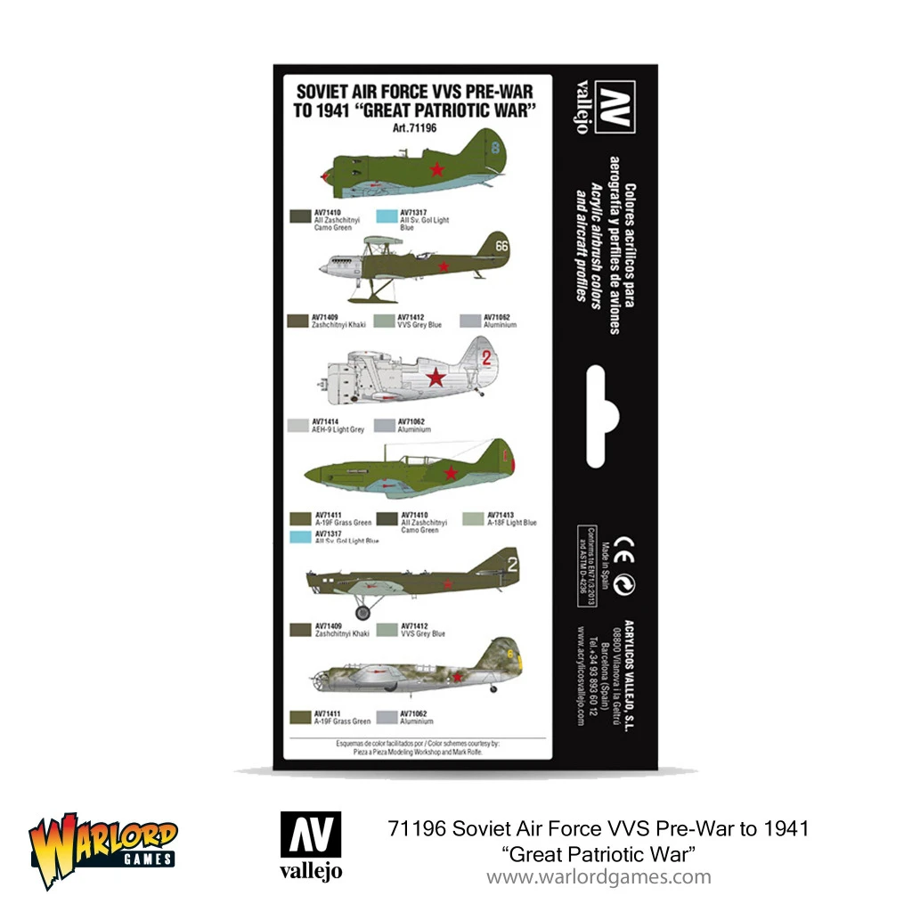Paint Set of 8 colours in 17ml; developed to paint the various colour combinations of the camouflage schemes of Soviet aircraft, starting with the years before WWII (the thirties) until the USSR entered into the βThe Great Patriotic Warβ in June 1941.